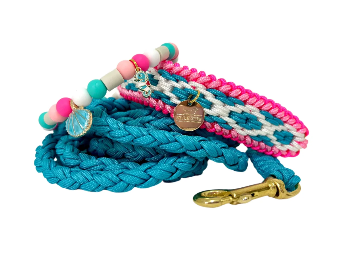 Hals- en leibanden apart verkrijgbaar. Blueberry halsband en Türkis leiband.