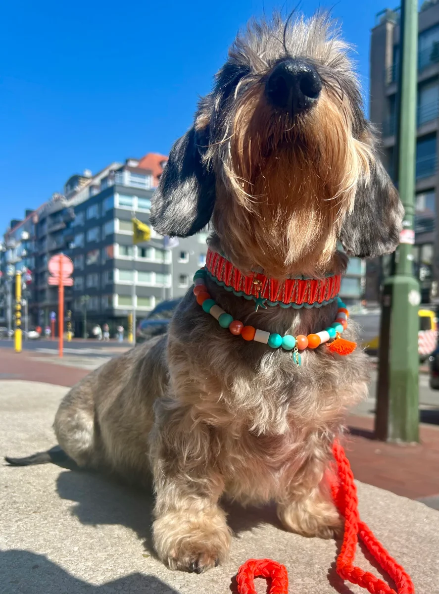 Hals- en leiband apart verkrijgbaar – Papaya.