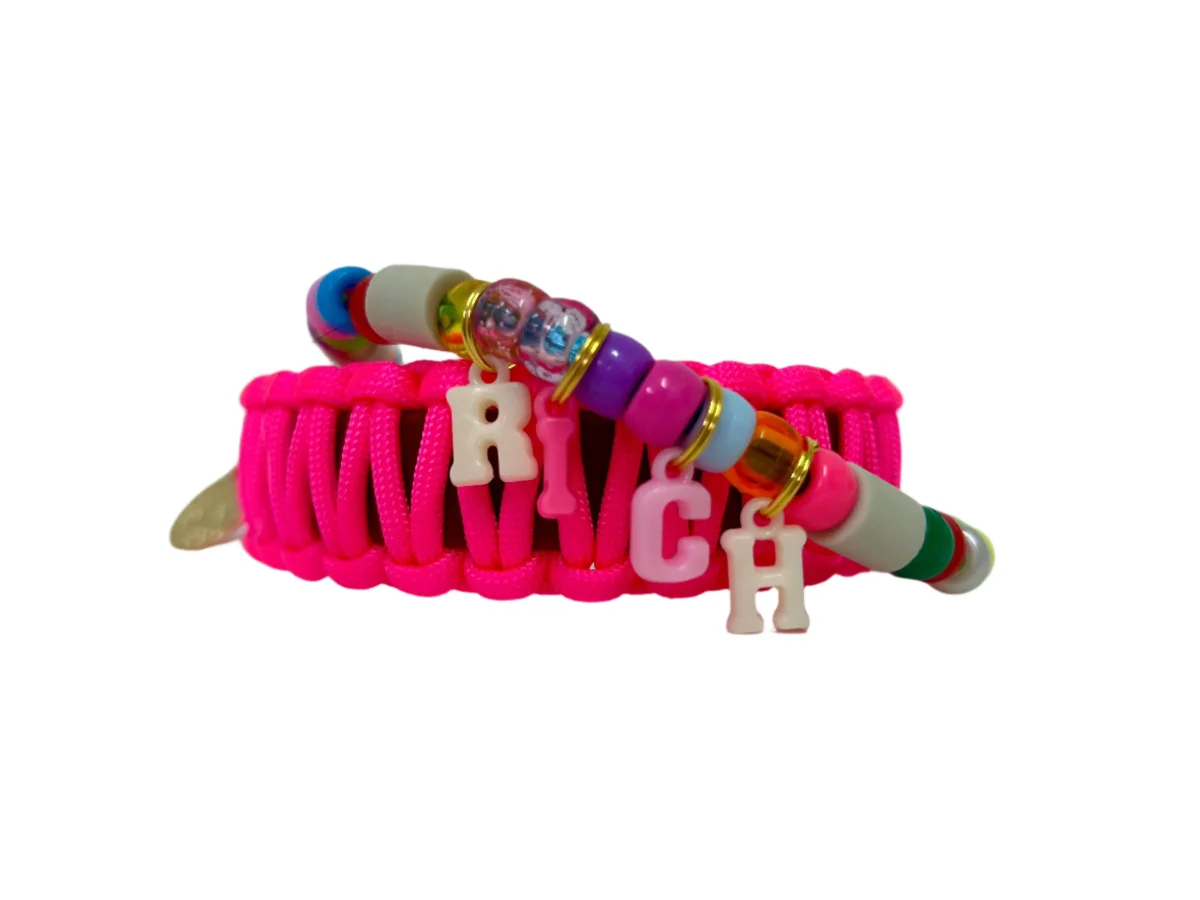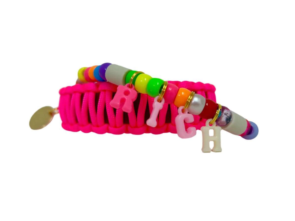 Let wel op: Elke tekenband is uniek. De bedeltjes zijn allemaal verschillend. Wij kunnen niet voorspellen welke bedel er aan uw tekenband zal bevestigd zijn of welke kleur combinatie het exact is.
