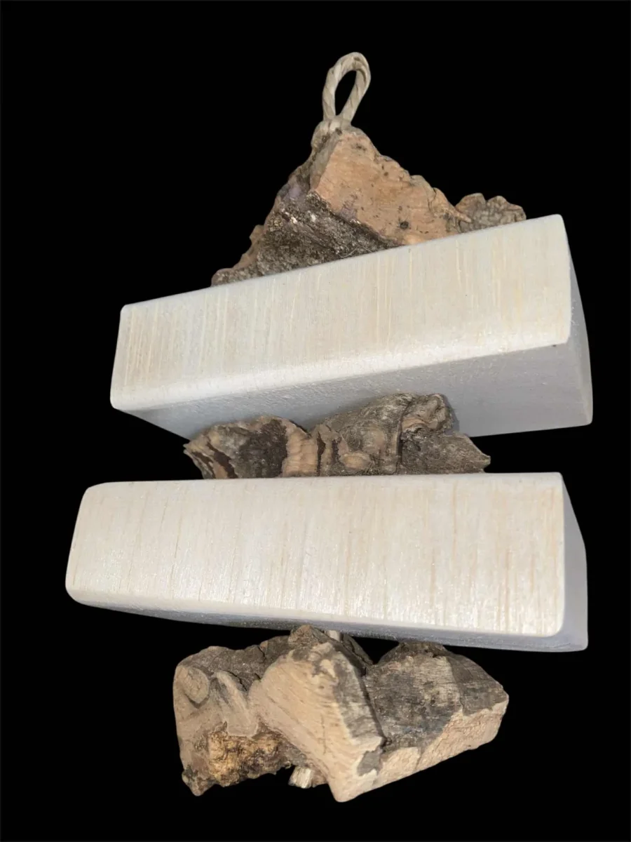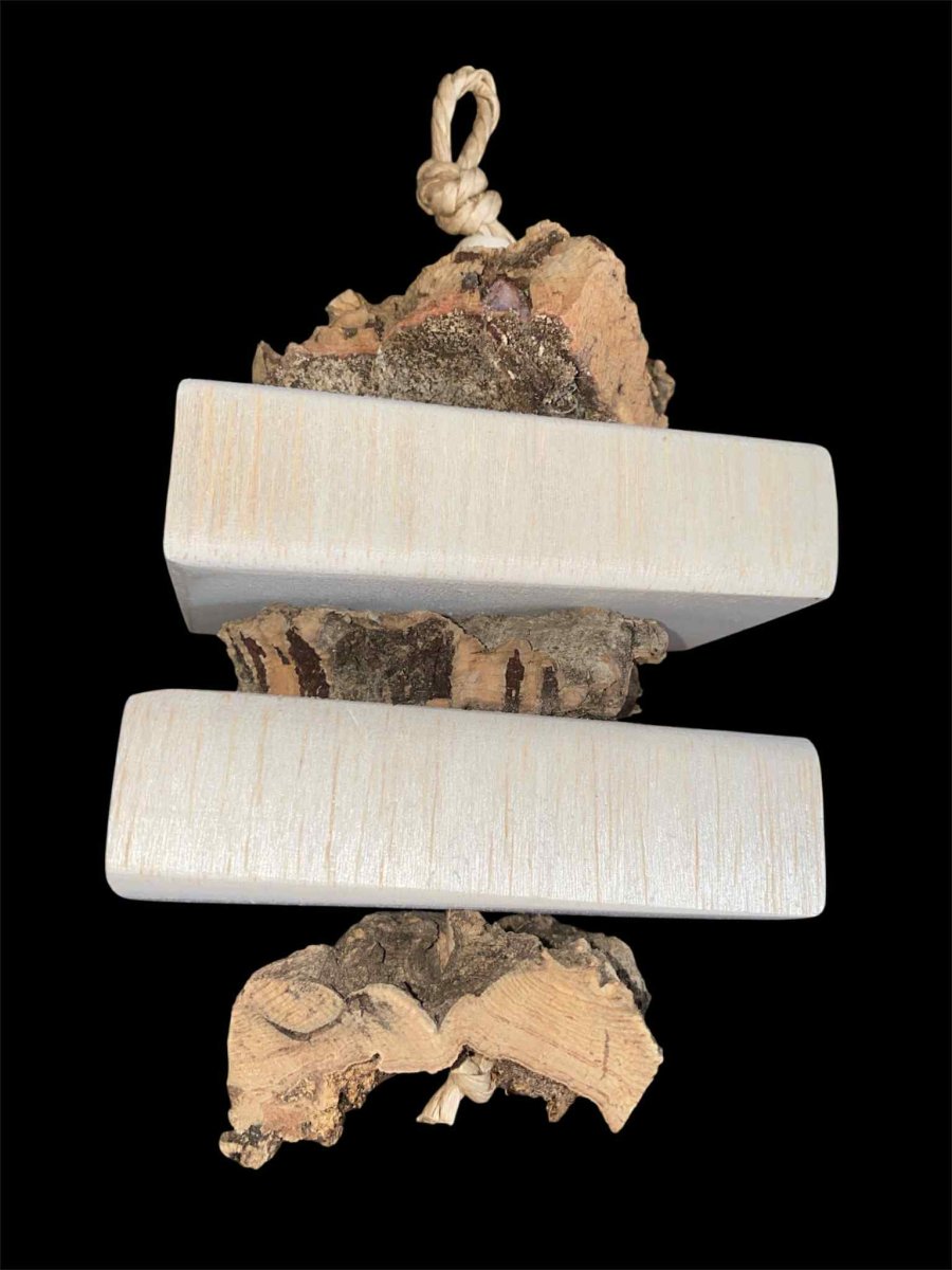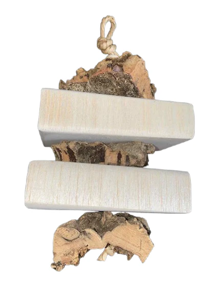 Laat jouw nieuwsgierige vogelhartje stralen met dit kleurrijke, luchtige speeltje van 21 cm lang en 11 cm breed! Gemaakt van zacht balsa en natuurlijk kurk – perfect om naar hartenlust te knagen, slopen en ontdekken.