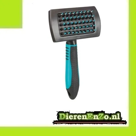 Deze borstel is voorzien van zachte kunststof pinnen die effectief losse haren, vuil en lichte klitten verwijderen zonder de huid te irriteren. Hierdoor is hij ideaal voor gevoelige dieren en geschikt voor regelmatig gebruik.
